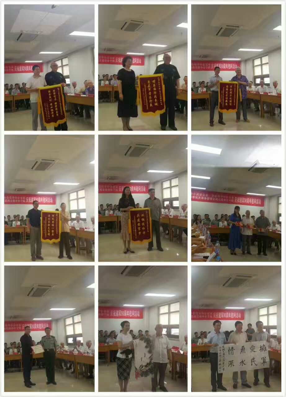 座談會(huì)后,北極寺老干部服務(wù)管理局建國(guó)前參加革命的離休老將軍崔儒勇、邱祖余、盧輝、壽大本、張輝燦、王明仁、紀(jì)杰尚、鄭友魁、軍旅書(shū)法家王天京向此次前來(lái)慰問(wèn)的協(xié)會(huì)領(lǐng)導(dǎo)和企業(yè)家贈(zèng)送書(shū)法作品。
