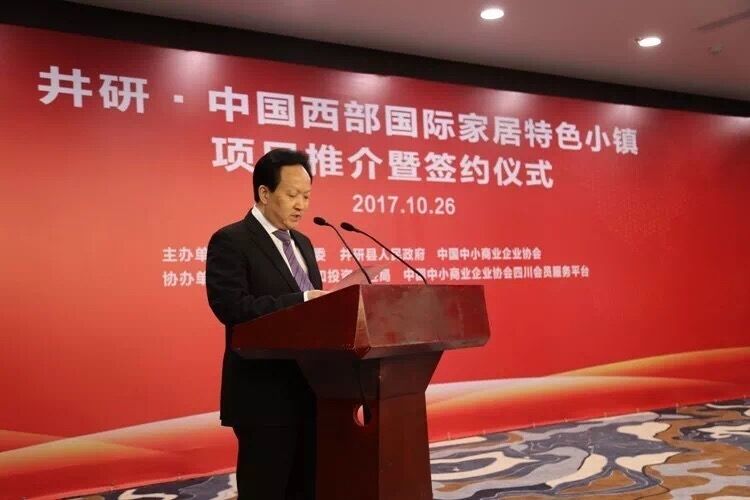 10月26日上午,中國西部國際家具特色小鎮(zhèn)項目推介活動暨簽約儀式在樂山金海棠大酒店舉行。中國中小商業(yè)企業(yè)協(xié)會副會長周兵,樂山市委常委、宣傳部長于麗,市人大常委會副主任賈志華,副市長廖克全,市政協(xié)副主席左文良,井研縣縣委書記周華榮,井研縣縣委副書記、縣長劉勇以及相關(guān)領(lǐng)導(dǎo)出席簽約儀式并見證項目簽約。
