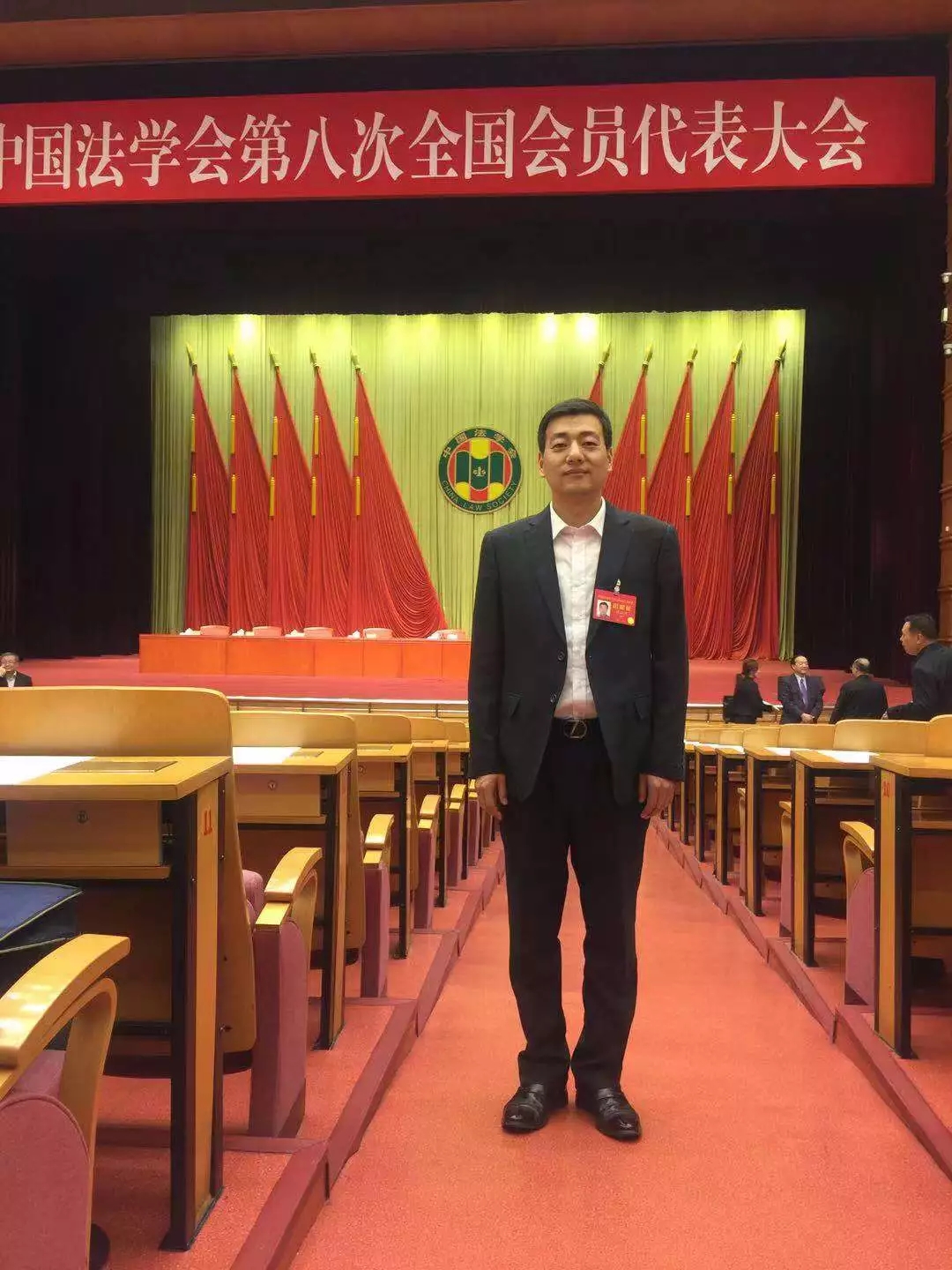 3月19日上午,中國(guó)法學(xué)會(huì)第八次全國(guó)會(huì)員代表大會(huì)在京舉行。習(xí)近平、李克強(qiáng)、栗戰(zhàn)書(shū)、王滬寧等黨和國(guó)家領(lǐng)導(dǎo)人到會(huì)祝賀,中共中央政治局委員、中央政法委書(shū)記郭聲琨受黨中央委托,發(fā)表了題為《在全面依法治國(guó)新征程中實(shí)現(xiàn)新?lián)?dāng)新作為》的致詞。中國(guó)中小商業(yè)企業(yè)協(xié)會(huì)副秘書(shū)長(zhǎng)兼企業(yè)權(quán)益保護(hù)辦公室執(zhí)行主任陳耀軍做為全國(guó)普法教育和維護(hù)中小企業(yè)權(quán)益先進(jìn)代表參加會(huì)議。