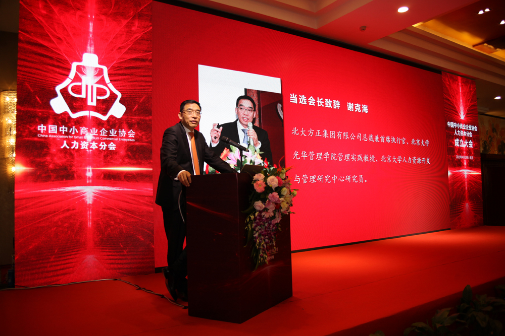 在今天上午舉行的中國中小商業(yè)企業(yè)協(xié)會人力資本分會成立大會上,北大方正集團總裁兼首席執(zhí)行官謝克海當(dāng)選會長!人社部,國資委,北京大學(xué)有關(guān)領(lǐng)導(dǎo)和專家到會祝賀!