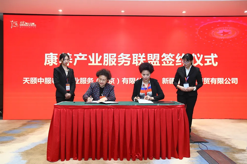 天頤中服老齡產(chǎn)業(yè)服務(wù)(北京)有限公司董事長陶瑩、新疆福聚祥商貿(mào)有限公司董事長趙曉萍簽署戰(zhàn)略合作協(xié)議