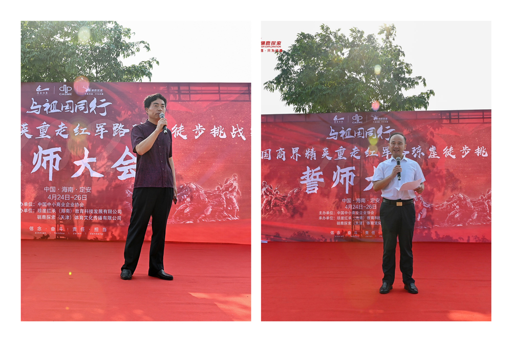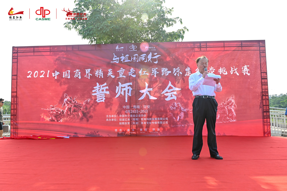 4月24日上午,2021百名企業(yè)家、志愿者重走紅軍路瓊崖徒步挑戰(zhàn)賽作為中國(guó)中小商業(yè)企業(yè)協(xié)會(huì)“慶祝建黨100周年”特別活動(dòng)在海南省定安縣興安公園廣場(chǎng)正式啟動(dòng)。中國(guó)商業(yè)聯(lián)合會(huì)黨委書記、會(huì)長(zhǎng),中國(guó)中小商業(yè)企業(yè)協(xié)會(huì)創(chuàng)會(huì)會(huì)長(zhǎng)姜明,中國(guó)中小商業(yè)企業(yè)協(xié)會(huì)黨建顧問(wèn)、原總裝備部西昌衛(wèi)星發(fā)射中心副政委孫南京少將,海南省旅游和文化廣電體育廳處長(zhǎng)曹學(xué)軍,定安縣委宣傳部副部長(zhǎng)司玉,中國(guó)中小商業(yè)企業(yè)協(xié)會(huì)會(huì)長(zhǎng)助理許湘和200多名來(lái)自全國(guó)各地的企業(yè)家和志愿者等出席啟動(dòng)儀式。孫南京少將實(shí)地為企業(yè)家開展黨史學(xué)習(xí)和教育活動(dòng)。