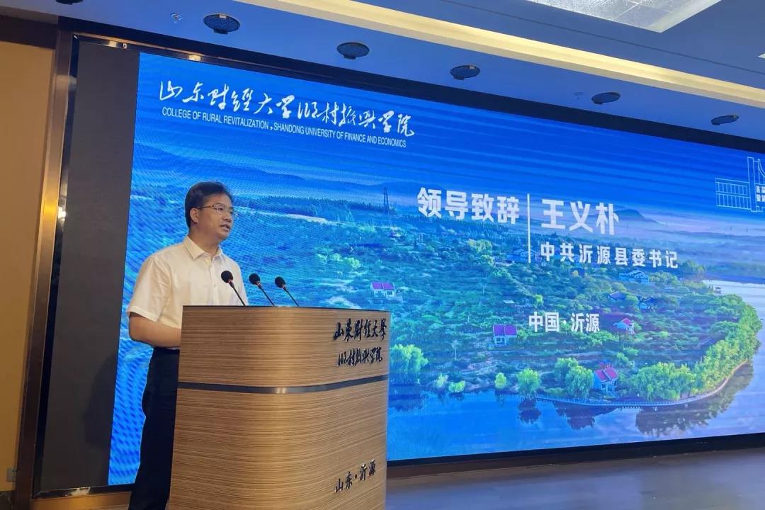 沂源縣委書記王義樸致歡迎辭,沂源縣山好、水好、林好、果好、景好、人好,歡迎大家來(lái)沂源縣投資、旅游、做客。
