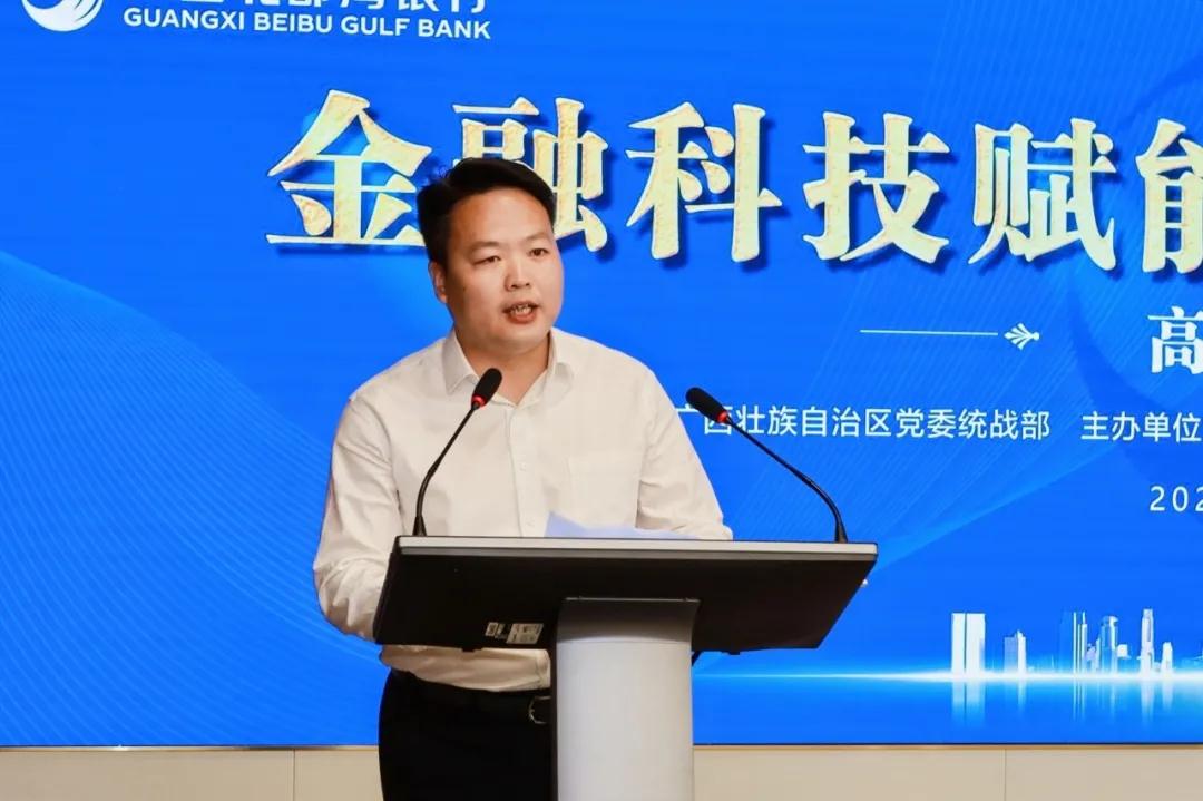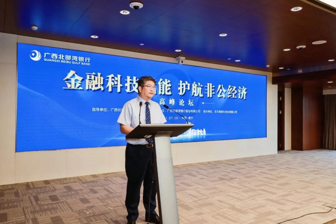 7月30日,廣西北部灣銀行“金融科技賦能,護(hù)航非公經(jīng)濟”高峰論壇在南寧順利舉行。自治區(qū)黨委統(tǒng)戰(zhàn)部副部長、機關(guān)黨委書記馮華清,北部灣銀行主持全面工作黨委副書記、副董事長王能,中國中小商業(yè)企業(yè)協(xié)會書記、駐會副會長任興磊,國家金融與發(fā)展實驗室副主任、上海金融與發(fā)展實驗室主任曾剛,東方微銀科技股份有限公司總裁、董事王德偉出席論壇并發(fā)言,北部灣銀行行長助理蔣逵主持活動,自治區(qū)金融監(jiān)管局,自治區(qū)大數(shù)據(jù)發(fā)展局,區(qū)內(nèi)50余家行業(yè)協(xié)會及民營企業(yè)代表參加。