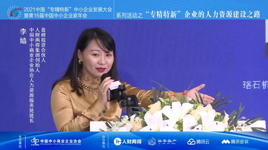 12月15日,由中國中小商業(yè)企業(yè)協(xié)會主辦,人財兩得、柒零實產(chǎn)、騰訊云、騰訊會議協(xié)辦的2021中國“專精特新”中小企業(yè)發(fā)展大會暨第16屆中國中小企業(yè)家年會系列活動——“專精特新”企業(yè)的人力資源建設之路線上開啟。