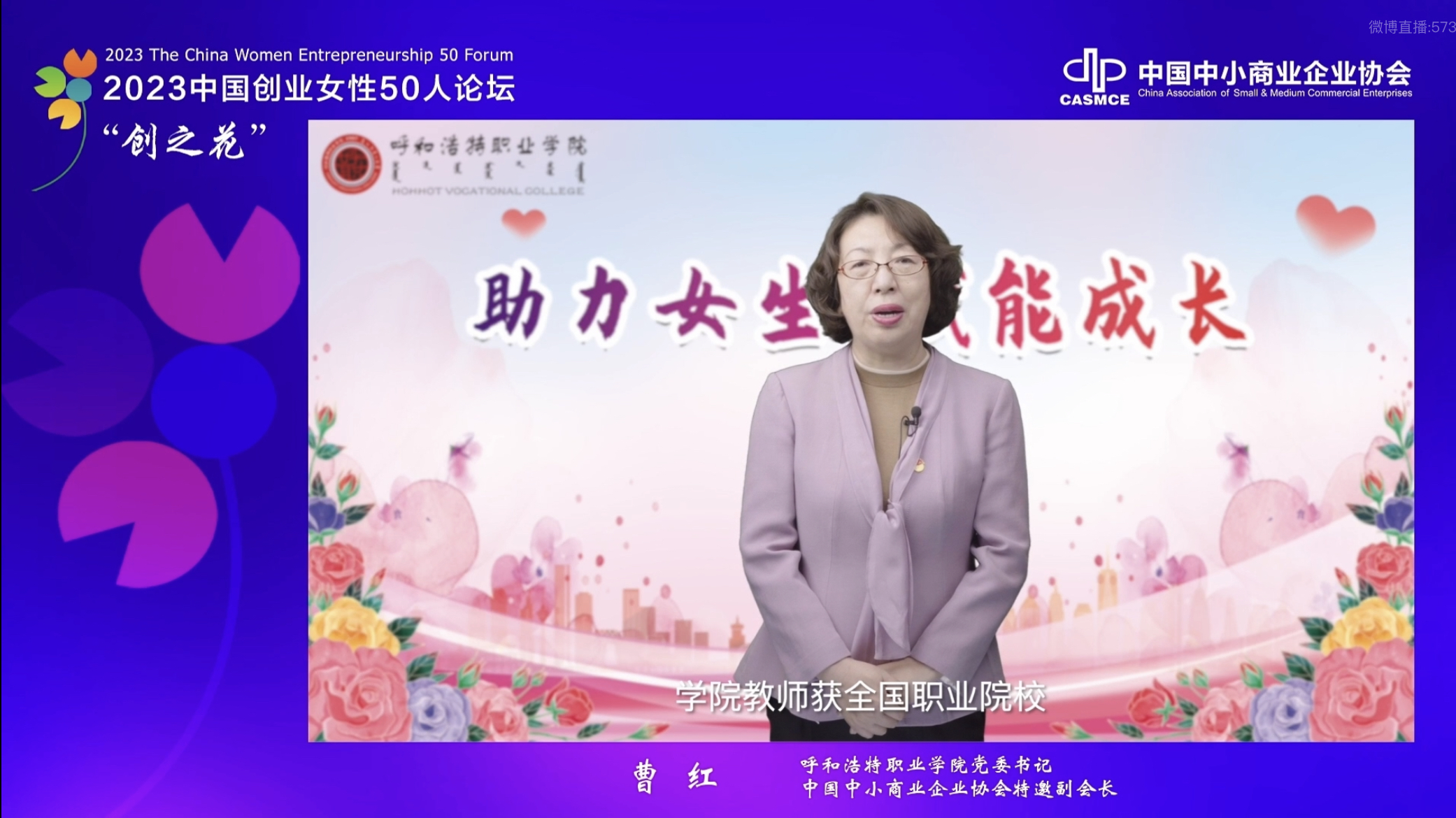 中國中小商業(yè)企業(yè)協(xié)會特邀副會長、呼和浩特職業(yè)學(xué)院黨委書記曹紅做“助力女士 賦能成長”主題分享。她指出,學(xué)院大力推動(dòng)校企融合,落實(shí)“訪企拓崗促就業(yè)專項(xiàng)行動(dòng)”,成立了職業(yè)教育聯(lián)盟,已經(jīng)與130多家企業(yè)開展校企合作,誠邀會員企業(yè)到我們呼和浩特職業(yè)學(xué)院參觀考察,希望和大家達(dá)成深度合作,為高校女生創(chuàng)業(yè)就業(yè)搭建更多平臺,幫助廣大女生實(shí)現(xiàn)自己的價(jià)值。