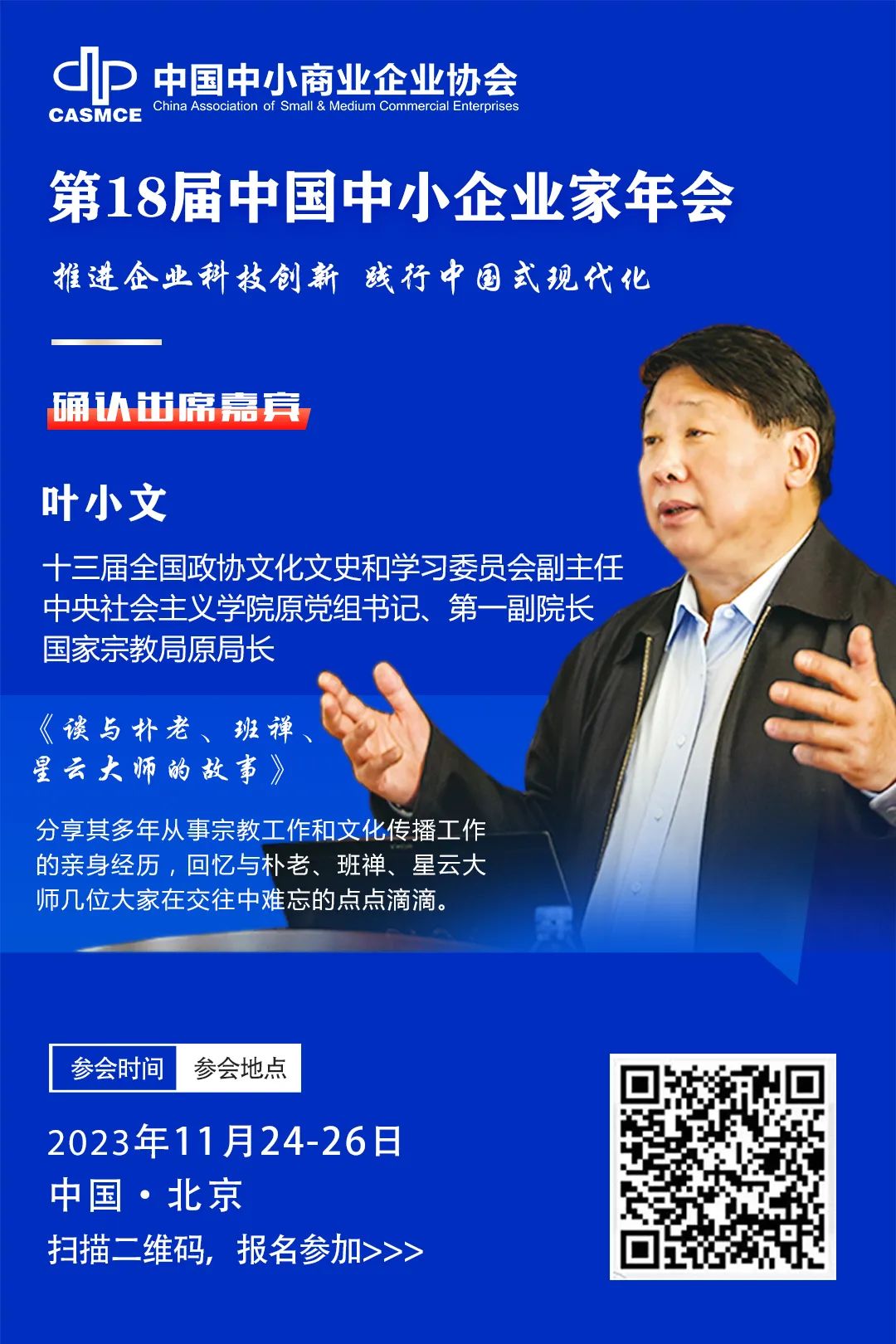 還有最重要的,最期待的,國(guó)家宗教局原局長(zhǎng)葉小文的主題報(bào)告,作為備受期待的名嘴,葉小文書(shū)記此次重點(diǎn)圍繞,在任國(guó)家宗教局局長(zhǎng)期間,與許多高僧大德們有著“親見(jiàn),親歷,親為”的交往經(jīng)歷,值得期待。