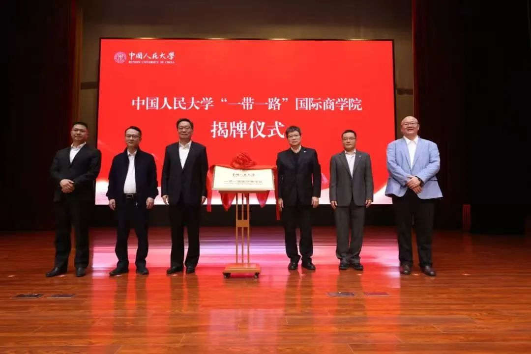 中國人民大學校長林尚立,金華市委書記朱重烈,金華市委常委、義烏市委書記王健,金華市副市長、義烏市市長葉幫銳、中國人民大學副校長支曉強和中國人民大學“一帶一路”國際商學院執(zhí)行院長宋大我共同為學院揭牌。