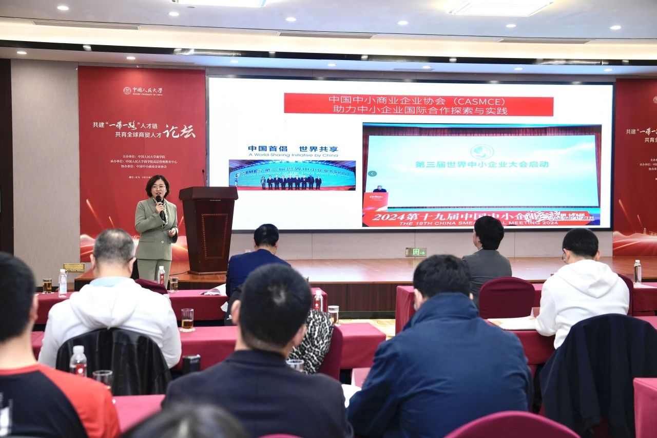 許湘作《發(fā)揮中小企業(yè)獨特優(yōu)勢,共享“一帶一路”機遇》主題演講。她強調(diào)了中小企業(yè)在“一帶一路”建設(shè)中的重要作用,并分享了協(xié)會在助力中小企業(yè)國際合作方面的實踐。她表示,中小企業(yè)應(yīng)進一步發(fā)揮其獨特優(yōu)勢,通過與國際協(xié)同創(chuàng)新合作,在開放發(fā)展中實現(xiàn)互利共贏。同時,中小企業(yè)要發(fā)揮改善共建國家民生、帶動當?shù)鼐蜆I(yè)與發(fā)展方面的潛力,利用當?shù)厝谌雰?yōu)勢提供優(yōu)質(zhì)服務(wù)。中小企業(yè)要加強在綠色、數(shù)字等多領(lǐng)域的創(chuàng)新推動,以及加強在合規(guī)經(jīng)營和風險應(yīng)對方面的能力。希望更多機構(gòu)參與到中國人民大學“一帶一路”國際商學院的建設(shè)中,共同為中小企業(yè)共享“一帶一路”機遇貢獻力量。