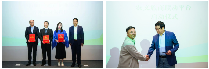 活動現(xiàn)場,農(nóng)文旅商聯(lián)動平臺正式啟動。該平臺依托政策支持與數(shù)字化技術(shù)構(gòu)建而成,致力于推動農(nóng)業(yè)、文化、旅游、商業(yè)的深度融合,為鄉(xiāng)村振興與城鄉(xiāng)融合發(fā)展提供有力支撐。巴蜀文化旅游走廊產(chǎn)業(yè)聯(lián)盟副秘書長、重慶文旅集團營銷中心副總經(jīng)理舒姝,中國中小商業(yè)企業(yè)協(xié)會副會長王翌鑫,元界矩陣聯(lián)合創(chuàng)始人付林、新疆國興農(nóng)業(yè)發(fā)展集團有限公司副總經(jīng)理丁煒、臨沂農(nóng)業(yè)發(fā)展集團有限公司黨委副書記兼總經(jīng)理王立劍、新疆中基健康銷售有限公司總經(jīng)理朱建鄴共同上臺,見證這一重要的時刻。啟動儀式后,為臨沂大學(xué)原副校長、校黨委副書記、校學(xué)位委員會副主席謝亞非教授頒發(fā)特聘顧問證書,為平臺的發(fā)展增添了專業(yè)的智慧力量。