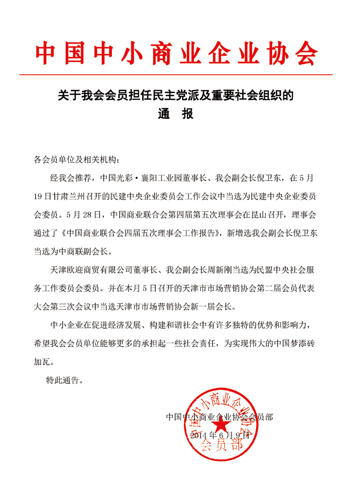 關(guān)于設(shè)立中國(guó)中小商業(yè)企業(yè)協(xié)會(huì)分支機(jī)構(gòu)的通知