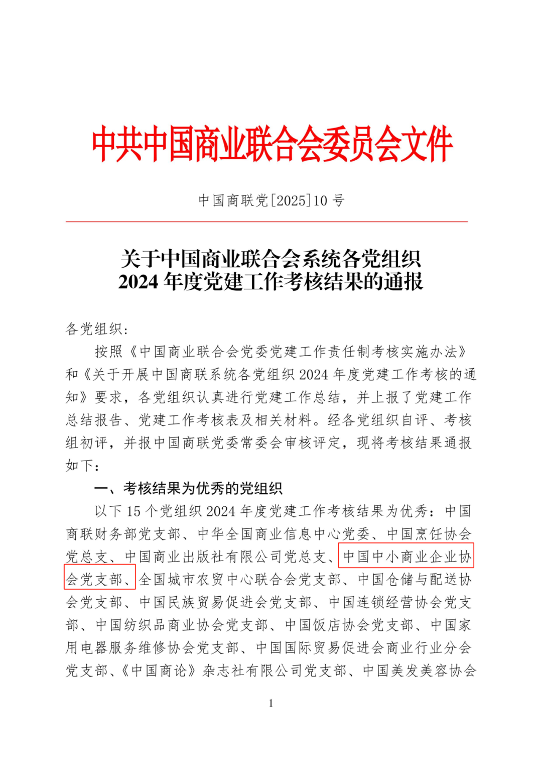 中國中小商業(yè)企業(yè)協(xié)會黨支部在中國商業(yè)聯(lián)合會黨委開展的黨建系統(tǒng)2024年度黨建工作考核中榮獲“優(yōu)秀黨組織”稱號。這一榮譽(yù)不僅是對協(xié)會黨支部過去一年黨建工作的肯定,更是對未來繼續(xù)推進(jìn)黨建工作的鼓舞和鞭策。