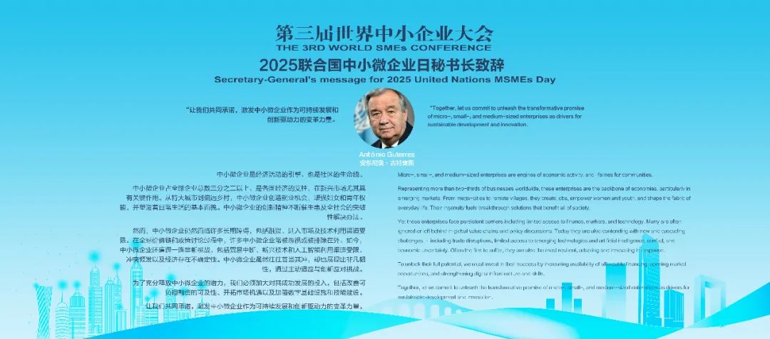 聯(lián)合國(guó)秘書(shū)長(zhǎng)古特雷斯在中小微企業(yè)日致辭中強(qiáng)調(diào):“中小微企業(yè)占全球企業(yè)總數(shù)超三分之二,但面臨融資難、技術(shù)獲取受限等多重挑戰(zhàn),數(shù)字化與綠色技術(shù)是釋放企業(yè)潛力的關(guān)鍵鑰匙?!边@一觀點(diǎn)與大會(huì)發(fā)布的強(qiáng)化政策協(xié)同、共建數(shù)字基建等六大倡議高度契合,形成推動(dòng)全球中小企業(yè)發(fā)展的戰(zhàn)略共識(shí),也是對(duì)聯(lián)合國(guó)2030年可持續(xù)發(fā)展議程的有力回應(yīng)。